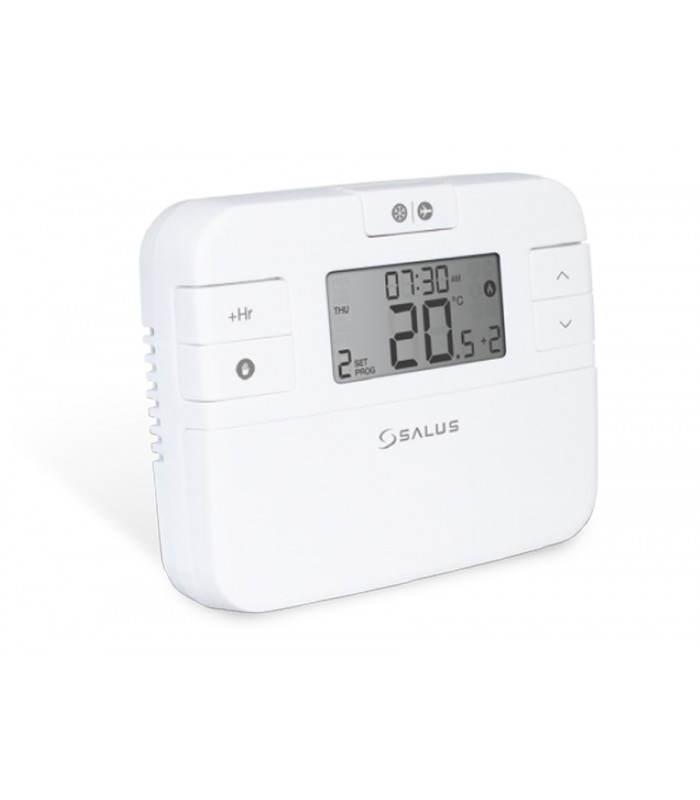 Cuenta con una pantalla LCD retroiluminada, cinco pulsadores para la disminución y el aumento de la temperatura, tres pulsadores ocultos tras la tapa (reset, ajuste hora y ajuste programas), función antihielo, modo vacaciones y modo manual.